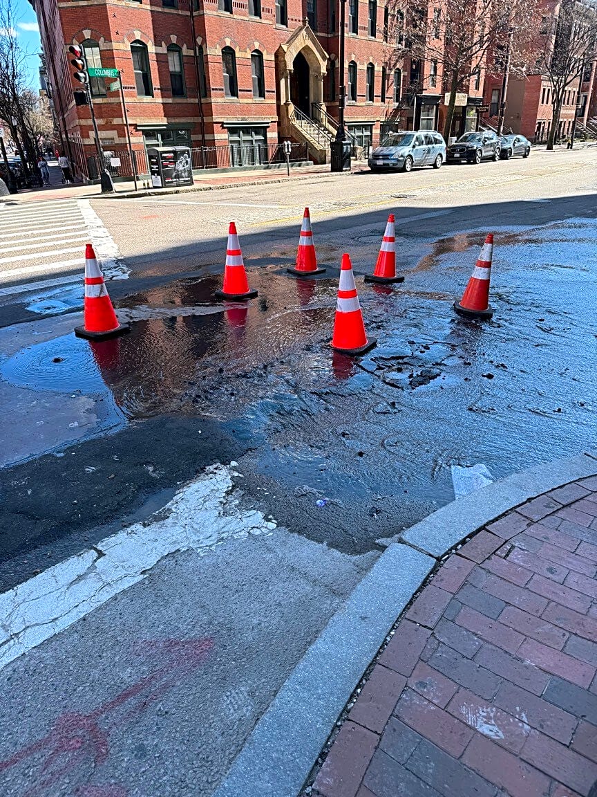 285 Columbus Ave, Boston, Ma, 02116Appears to be a water main break at Columbus and Clarendon in front of CVS.