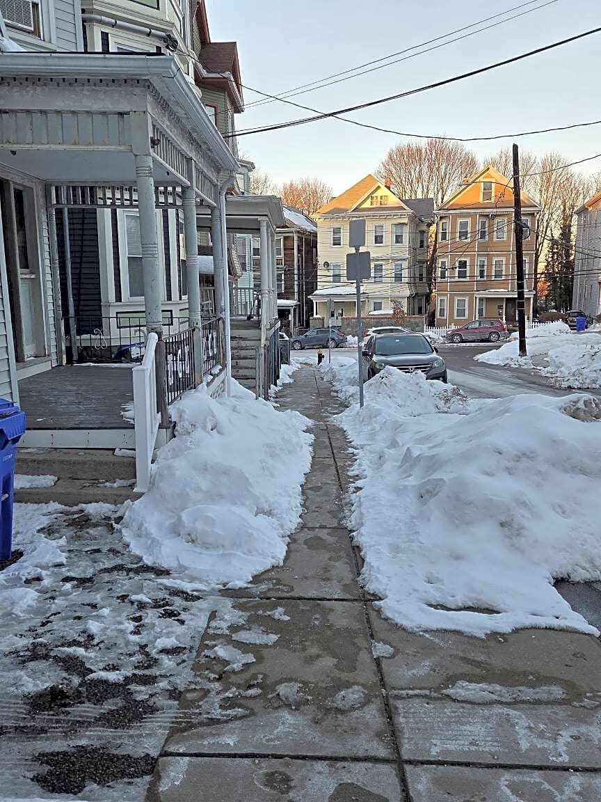 7 Sachem St, Mission Hill, Ma, 02120Residence at 7 Sachem St. Boston requirement of 42 inches (3 1/2 ft) for stroller/wheelchair clearance not met. This has been like tis since the storm.