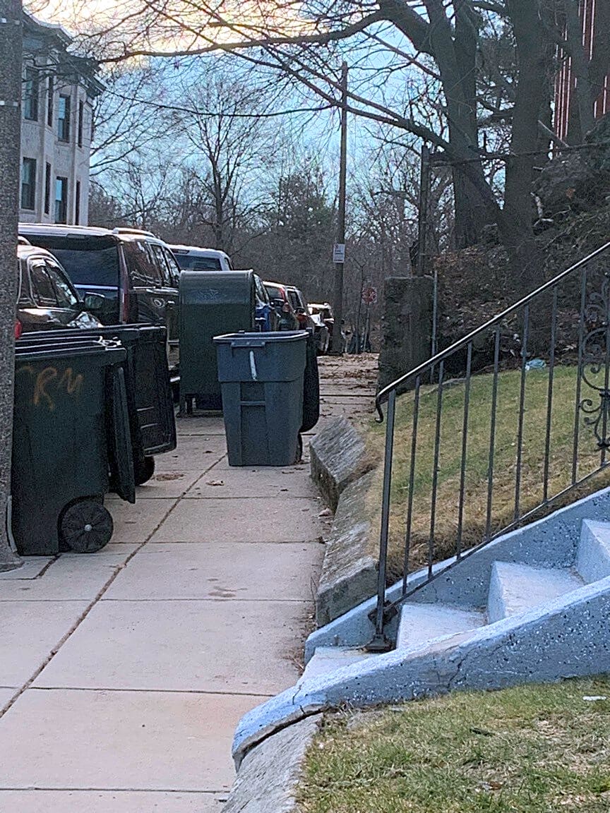 55 Iffley Rd, Jamaica Plain, Ma, 02130Trash cans left on sidewalk