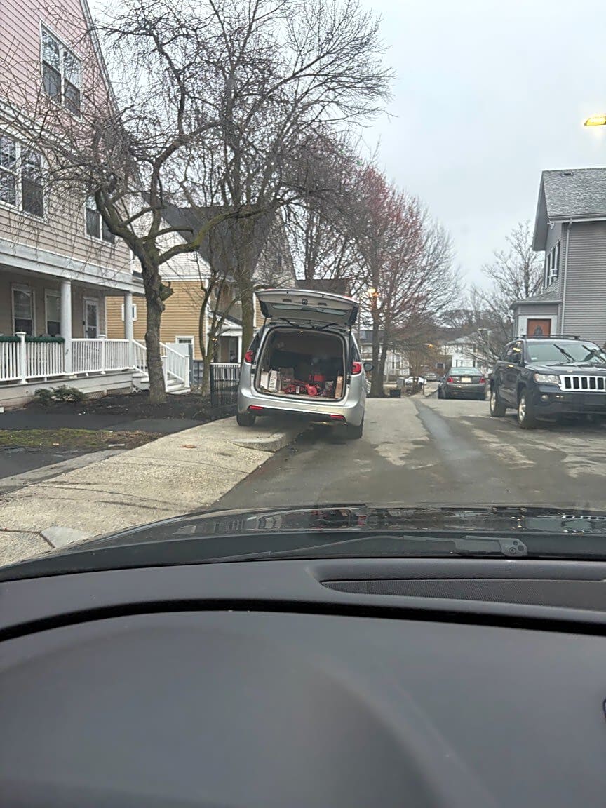 8 Huckins St, Roxbury, Ma, 02119Parked on side walk while doing a service that looks like replacing a wind shield for the body shop