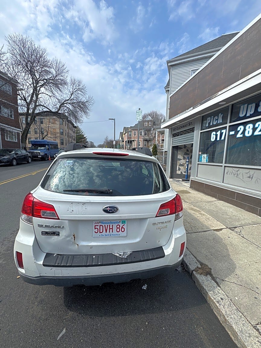 1 Page St, Dorchester, Ma, 02121Vehicle parked in front of 80 Glenway St., Dorchester two hour parking zone has been parked here for four weeks