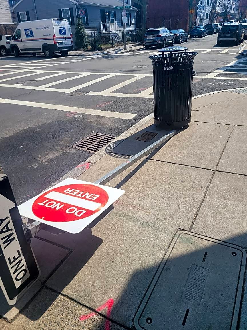 80 N Beacon St, Allston, Ma, 02134It would be really nice at the city of Boston would pick up its own street signs that are broken. Somebody had to move it onto private property so nobody would trip over. It's been reported for over a month now and nobody has picked it up. It's not that dangerous to step on the dirt and pick it up.