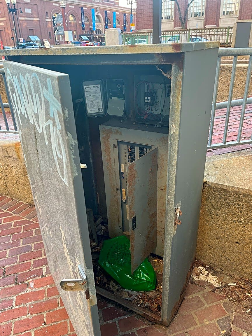 Intersection Of Public Alley No. 405 And Huntington Ave, Boston, MaElectrical box at 334 Mass Ave outside of Christian Science Practitioner Office has a broken lock and is open. The city’s reply to a previous report (10 months ago) requested further photos to verify the location and confirm that the box belongs to city. If it doesn’t belong to the city, I’ll report it to the building management. Thank you.
