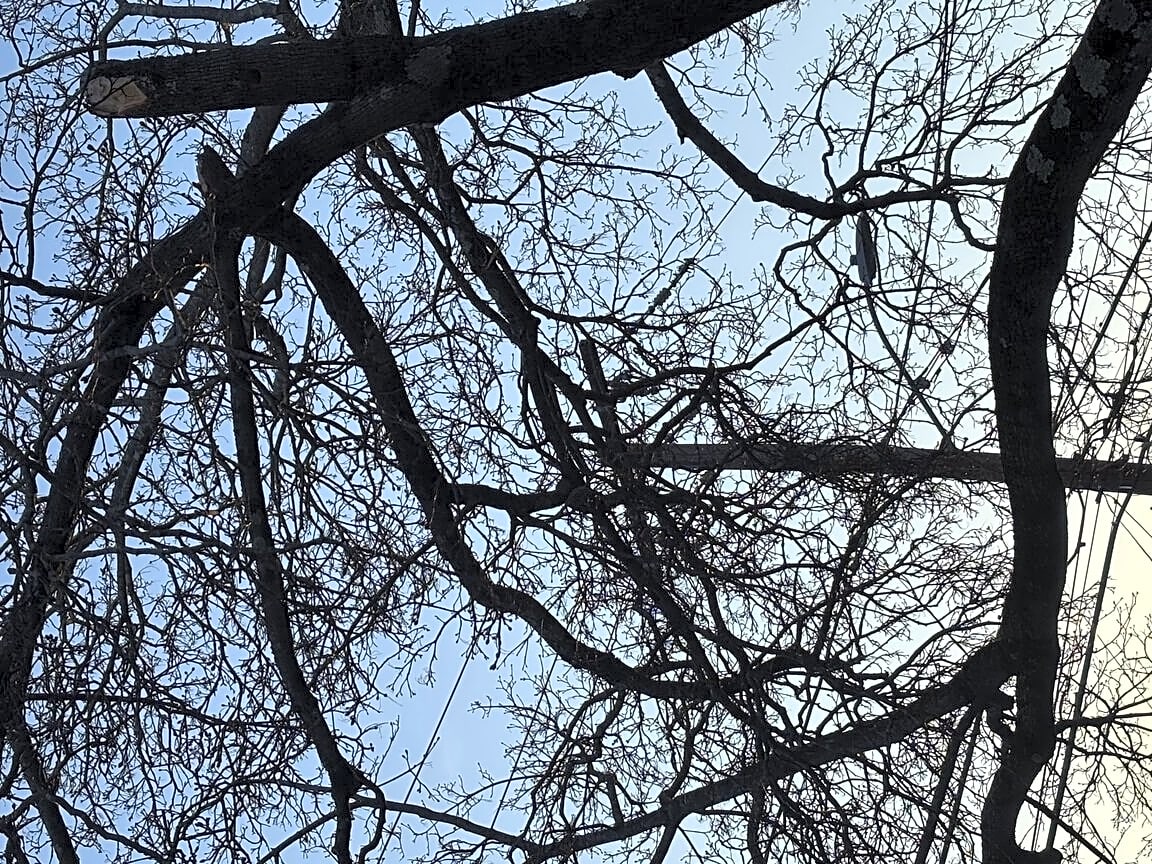 CLOSED #BCS-00183042Resolved. large hanger removed from city tree. IT JB JL GR BL.