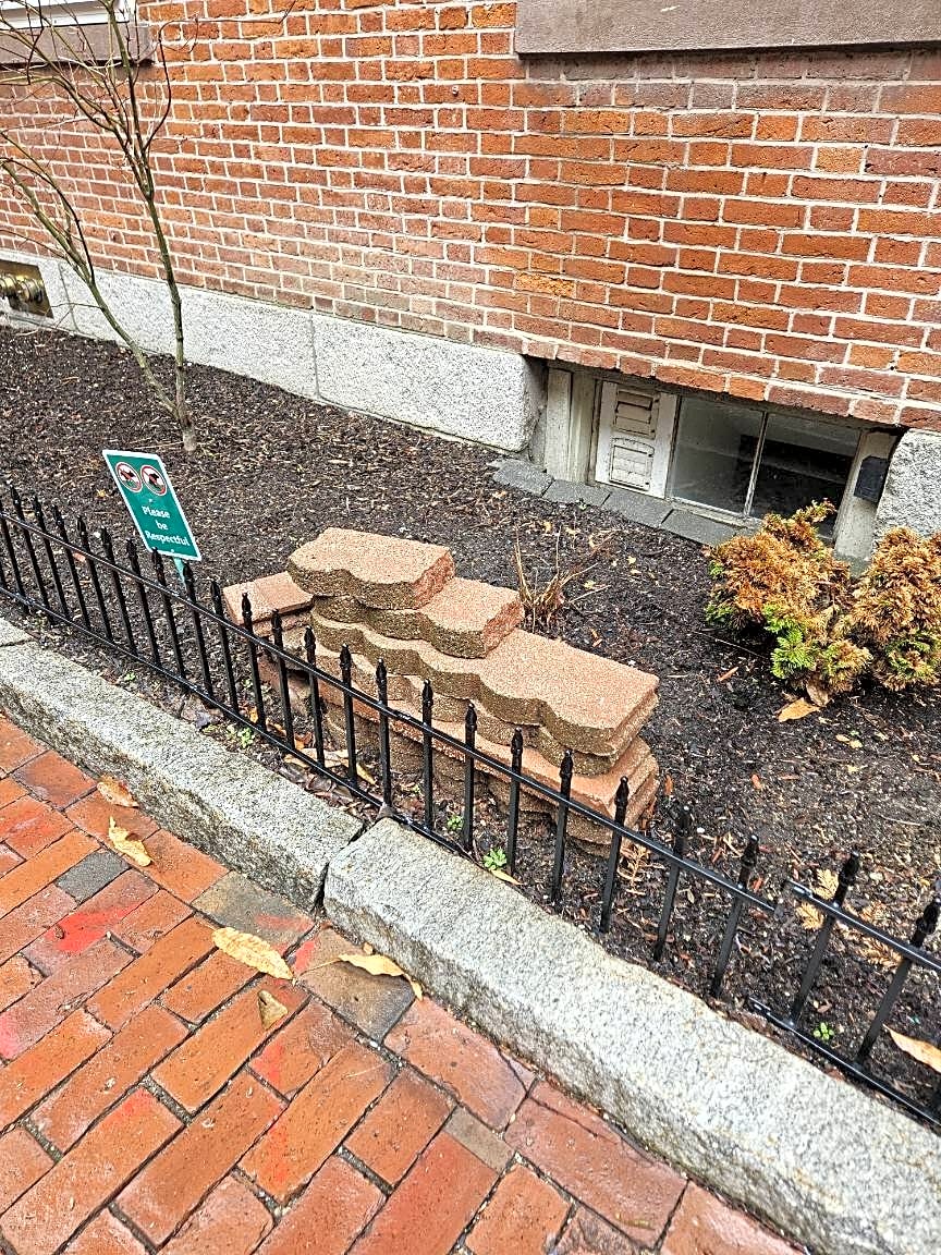 20 Hancock St, Boston, Ma, 02114Outside 20 Hancock Street in Beacon Hill where a new tree was planted last fall, some of the hedging bricks are sitting out of place from the sidewalk in our garden. If someone could come place them back around the tree that would be greatly appreciated!