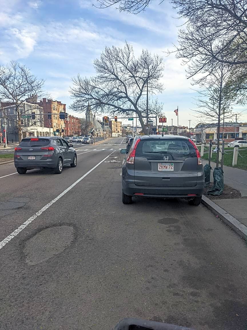 1338 Boylston St, Boston, Ma, 02215This entire stretch of Boylston needs barricades and/or flex posts to keep cars out of the bike lanes. Literally every time I come through here, there are cars parked in the bike lanes. Very unsafe. Bikers’ lives are in danger when they have to swerve out into traffic to go around a car blocking the bike lane.