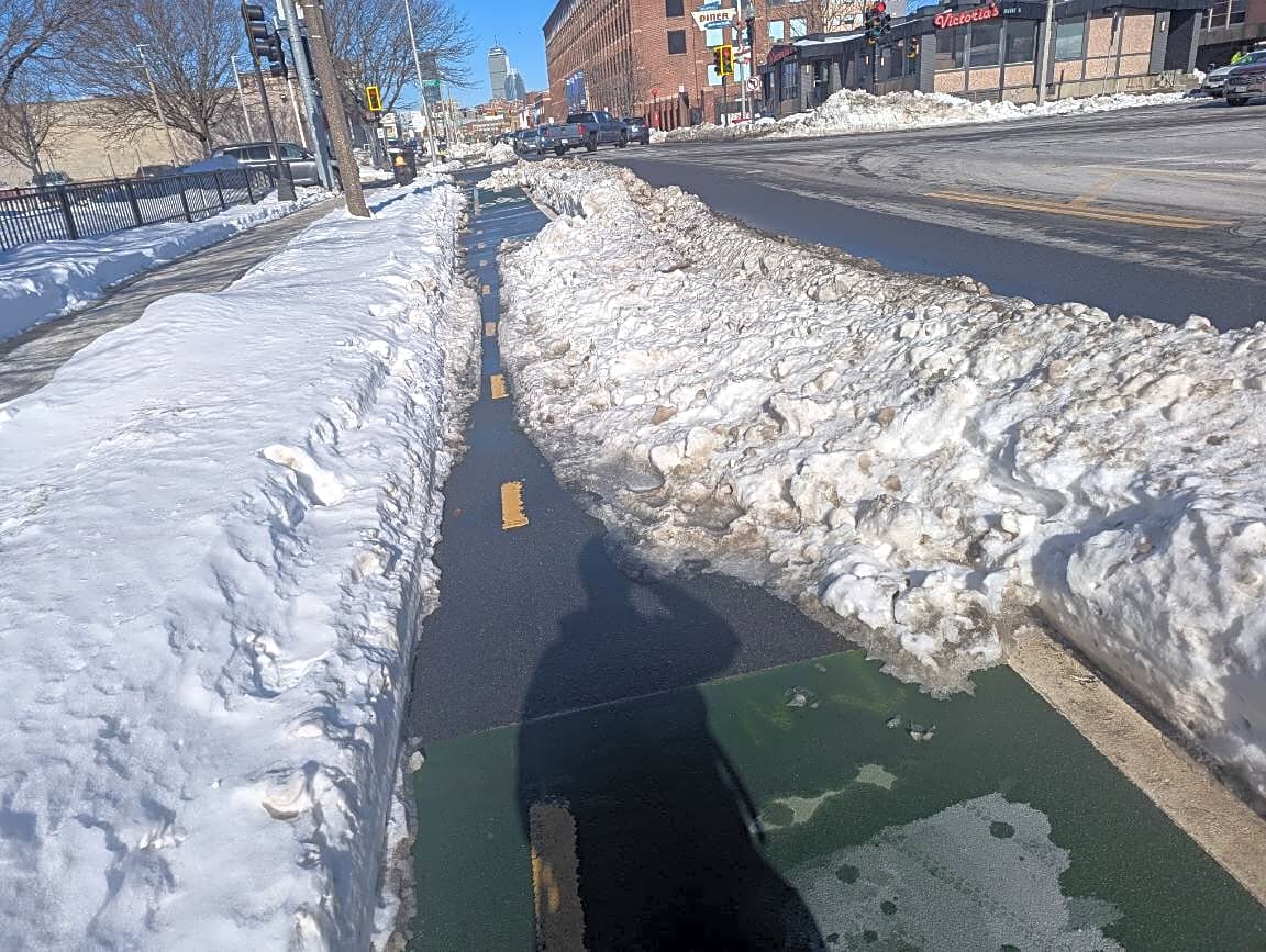 915 Commonwealth Ave, Boston, Ma, 02215Protected bike lane on Comm Ave west of BU bridge is completely unusable due to lack of snow removal.