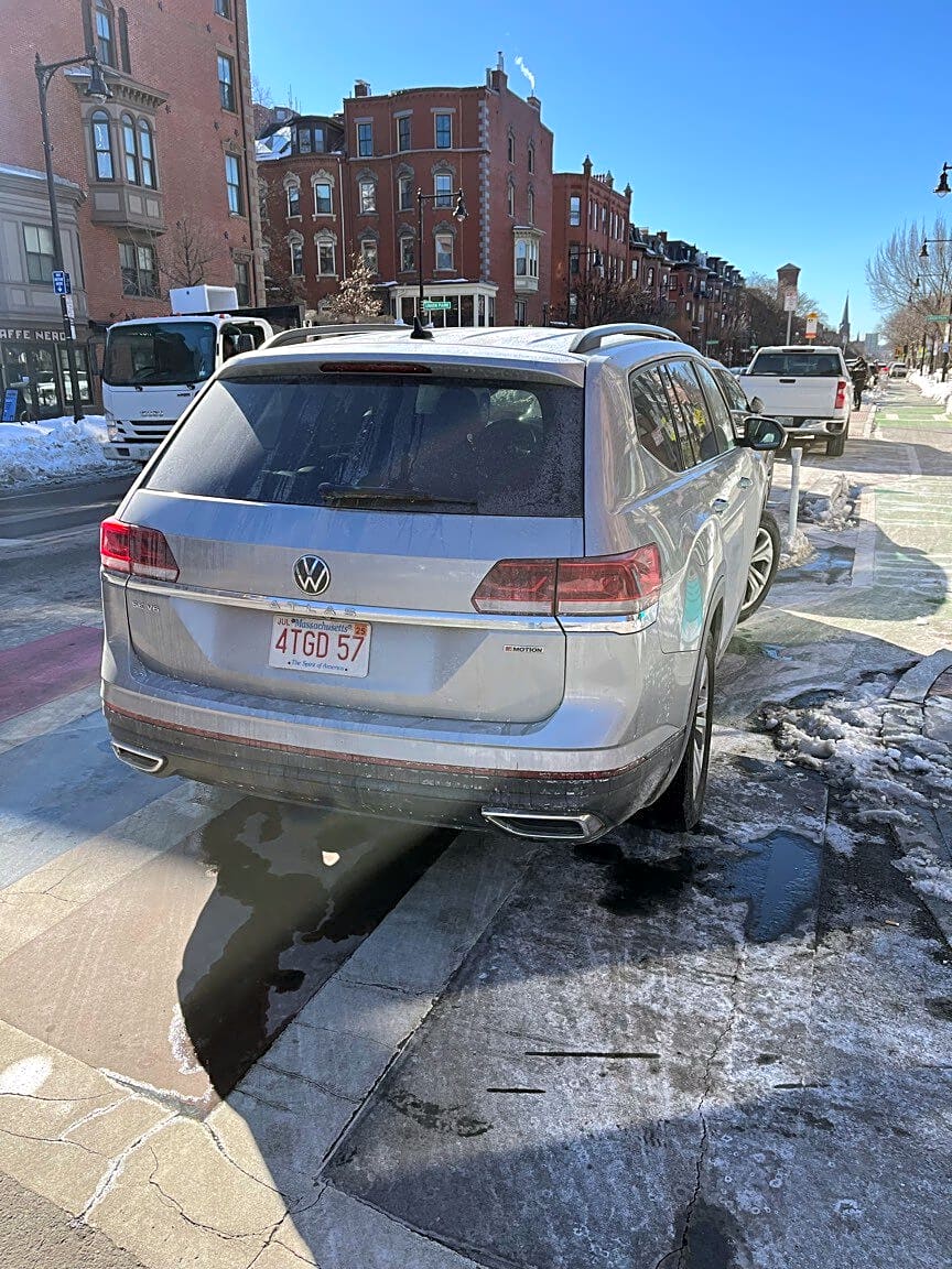 557 569 A Tremont St, Roxbury, Ma, 02118Parked car blocking street, crosswalk, and bike lane