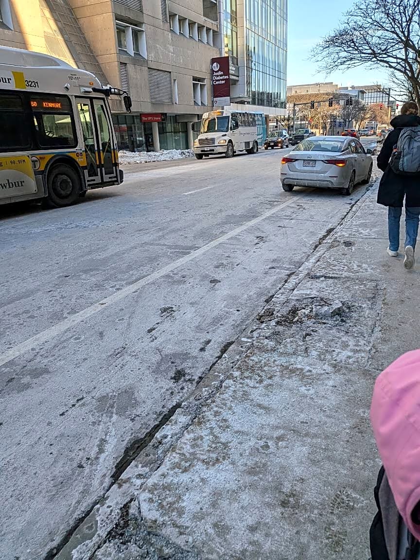 Intersection Of Pembroke St And Aguadilla St And Tremont St, Roxbury, MaTremont street bike lanes need more salt. Can't stop effectively and very slippery