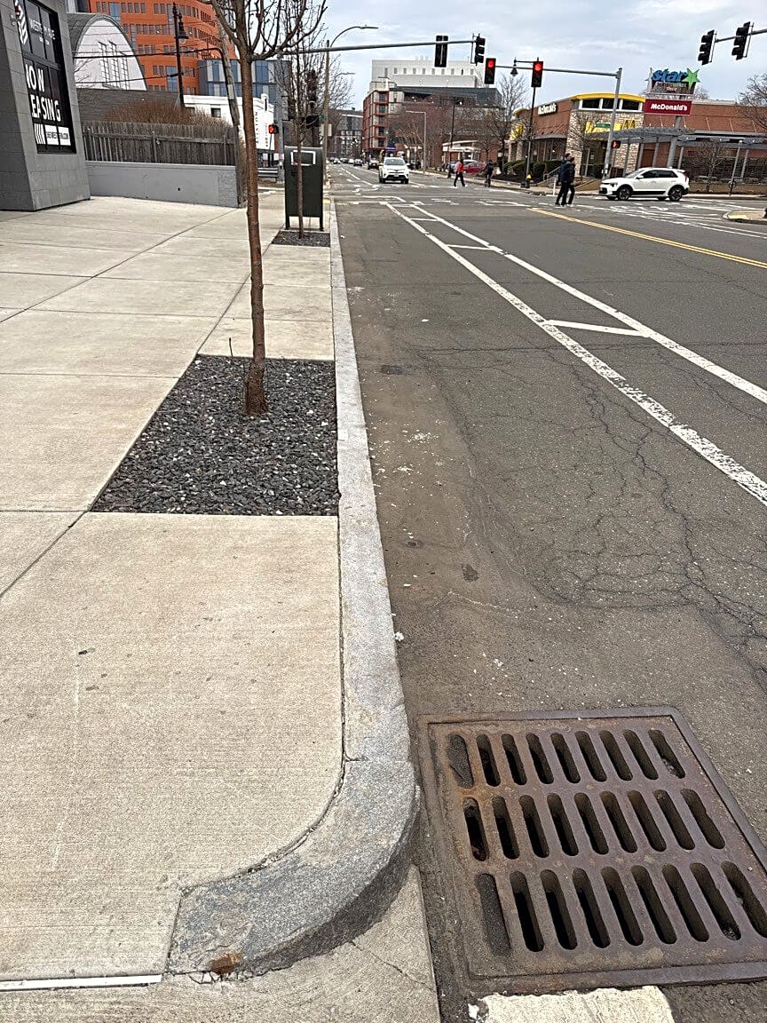 505 Washington St, Boston, Ma, 02111Pothole in bike lane in front of WNDR museum