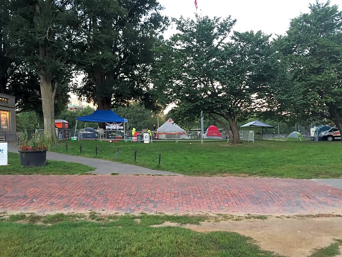 CLOSED #101001984092Case Noted. Boston Common is a public gathering place. If there is any access issues or civil disobedience occuring, please contact the Boston Park Rangers at 617-635-7383. Thank you.