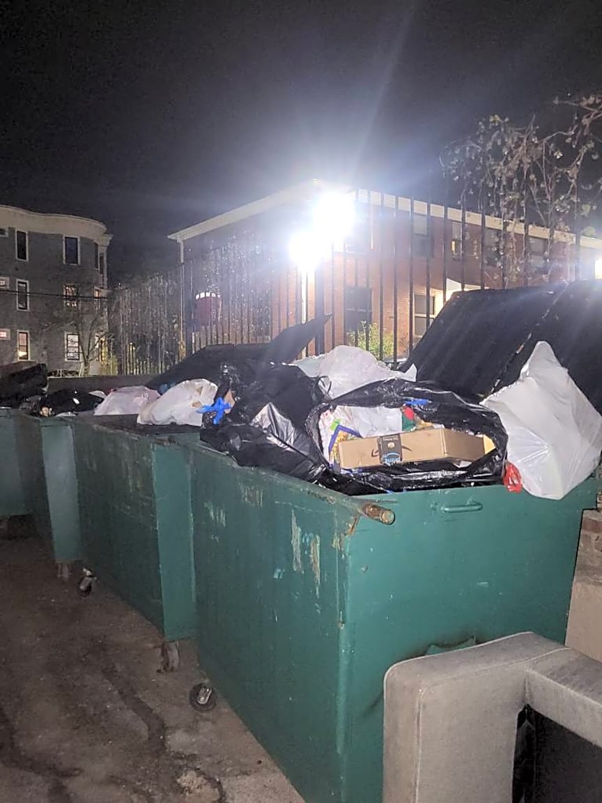 7 Bakersfield St, Dorchester, Ma, 02125Open, overfilled dumpster