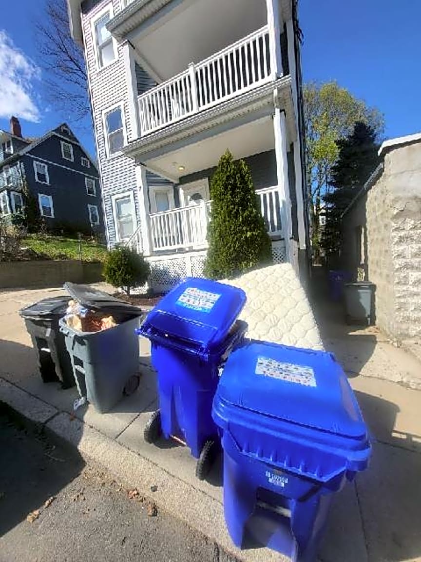 7 Downer Ave, Dorchester, Ma, 02125Trash out too soon & recycling blew all over the street. Plus they have had a mattress on the sidewalk since last night.