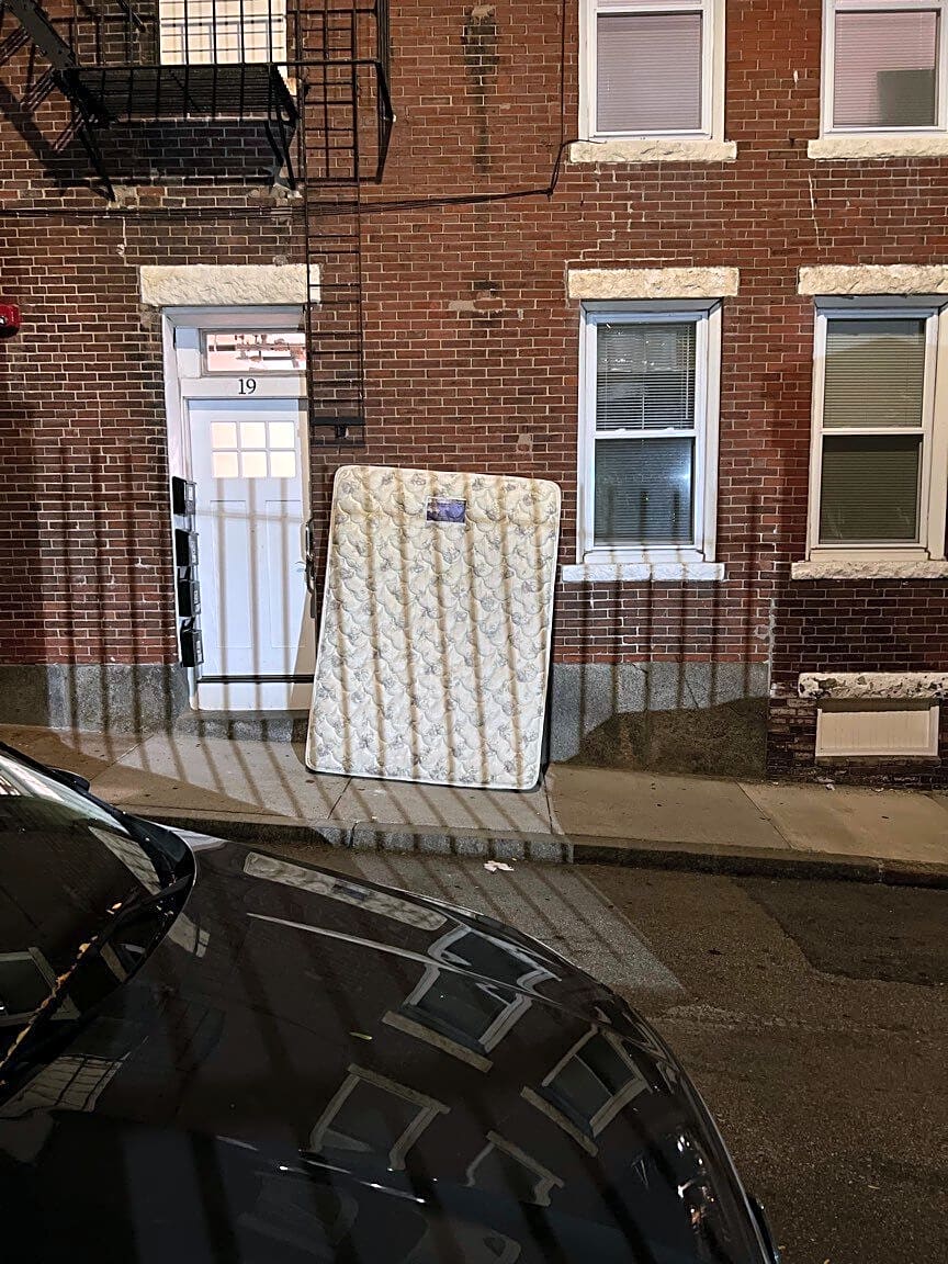 75 Chelsea St, East Boston, Ma, 02128mattresses on the sidewalk outside of 73 Chelsea Street