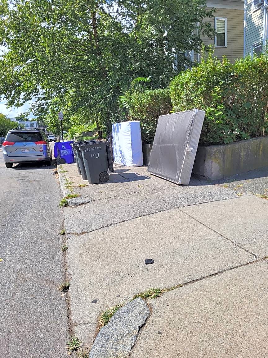 CLOSED #101005648513Case Resolved. Good afternoon, Thank you for contacting Boston 311. Mattress pickups now require online scheduling via the city's site at https://www.boston.gov/departments/public-works/mattress-recycling#/mattress Additionally, please be advised that this program is only available for residential properties with 6 units or less. Best, Boston 311 Team.