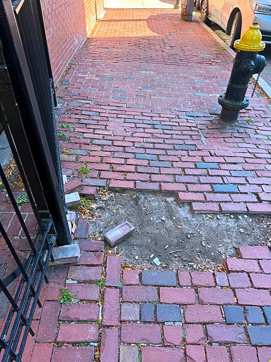 101 Atlantic Ave, Boston, Ma, 02110Damaged brick sidewalk on Richmond St near the Ausonia Plaza in the North End.