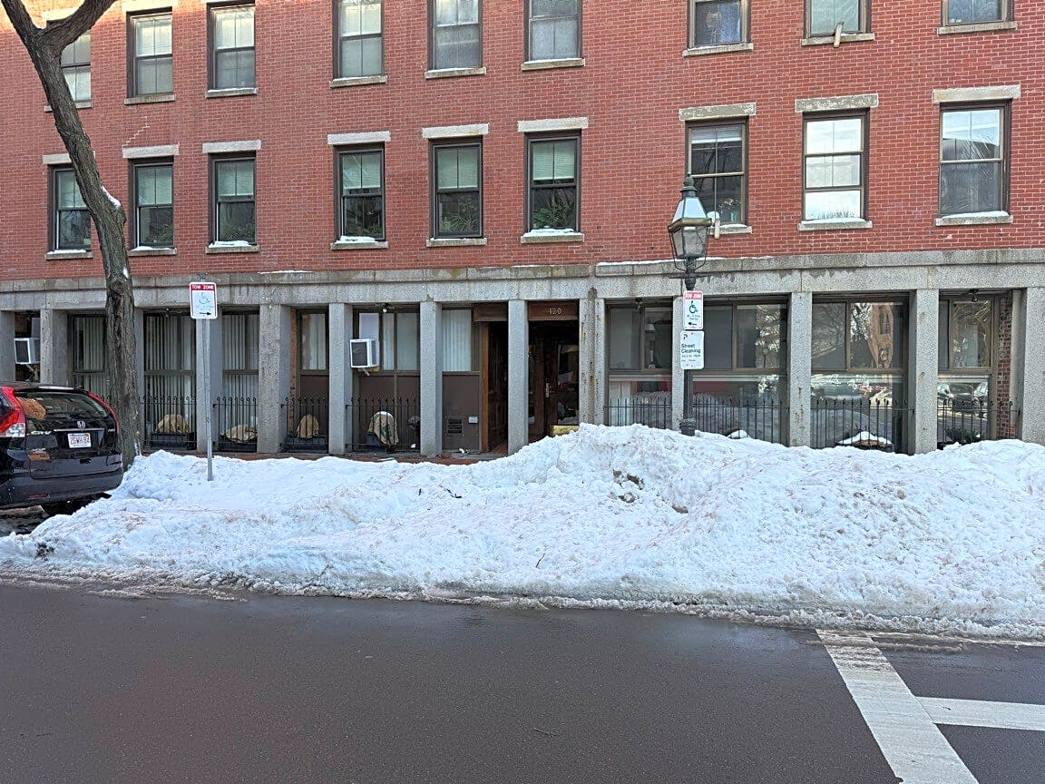 114 124 Commercial St, Boston, Ma, 02109Snow bank in handicap parking spot at 120 Commercial street in the north end at the corner of Richmond street