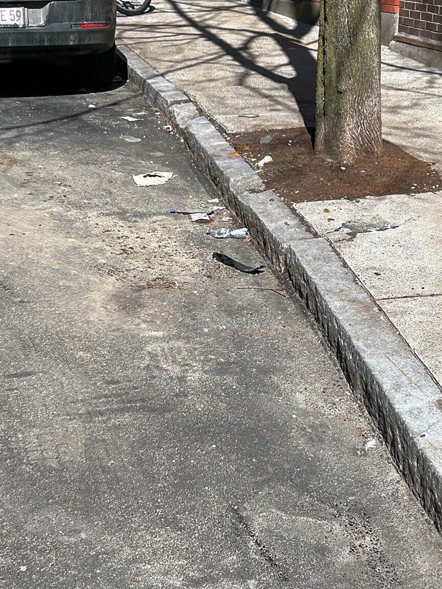 30 Charter St, Boston, Ma, 02113Terrible job this morning street sweeping charter Street in the north end. Trash still on the street. And rocks and gravel from roadwork for two water main brakes still remain. We need heavy duty street sweeping please.