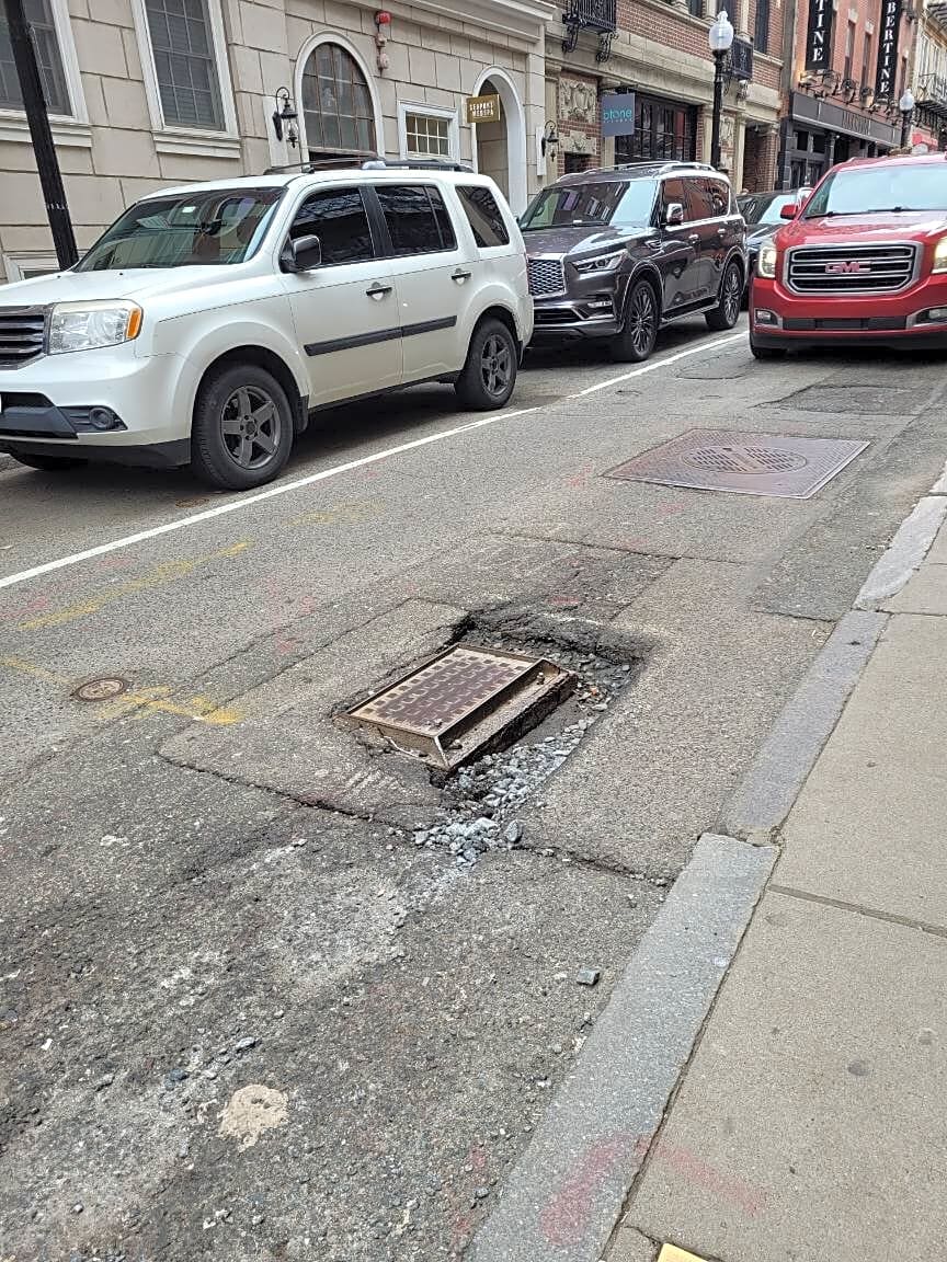 126 Salem St, Boston, Ma, 02113Please help fill in the pot hole just recently opened up at 126 Salem St. Boston, in the North End. It is a hole next to an electrical access cover. | Where exactly on the pavement is the pothole: [On Roadway] What is the approximate size of the pothole: [See picture on Images tab]