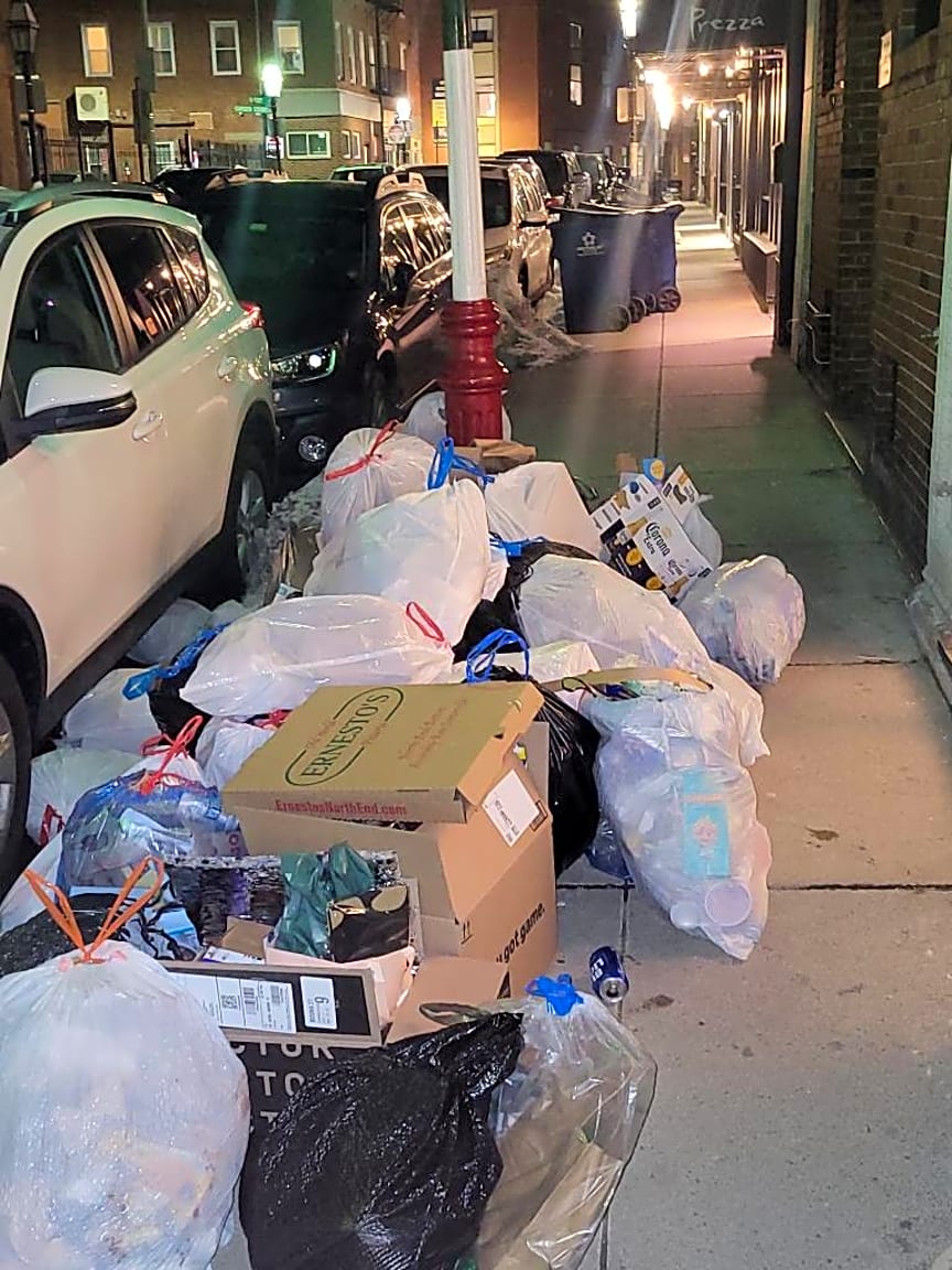 390 Commercial St, Boston, Ma, 02109Trash in the north end on Powers Court and North Street was not picked up.