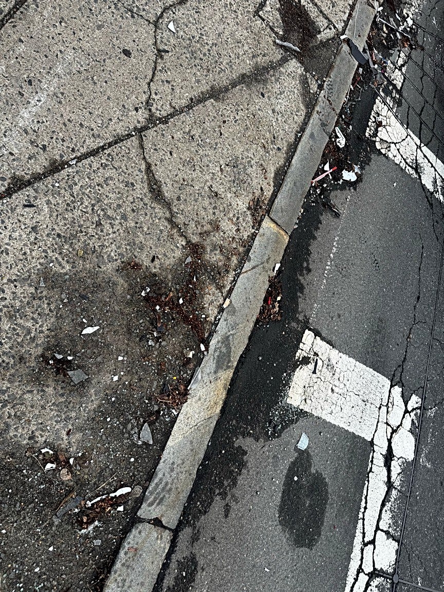 Intersection Of Morton St And Norfolk St, Mattapan, MaThere was a car accident here over the weekend and the sidewalk is still littered with broken glass and car pieces. This is right across the street from an elementary school where kids are crossing the crosswalk. There is also a broken fence impeding the sidewalk that's about to fall off its hinges.