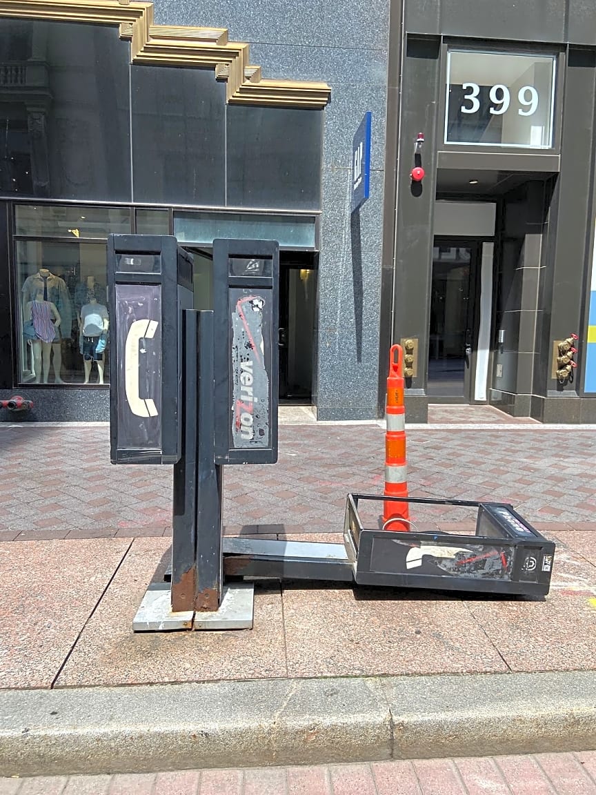 10 City Hall Ave, Boston, Ma, 02108Lawsuit waiting to happen. Placed up and will fall over. | Case (SR) Type: [Payphones] Referred To: [PAYPHONE]