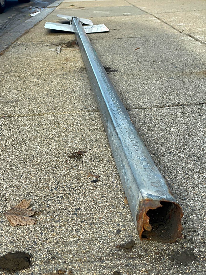 75 Malcolm X Blvd, Mission Hill, Ma, 02120Right in front of the Madison Park, vocational-technical high school on the sidewalk, there are metal Poles that are broken and the sidewalk is broken.Needs to be repaired right in front of a school zone right near MBTA Bus Stop