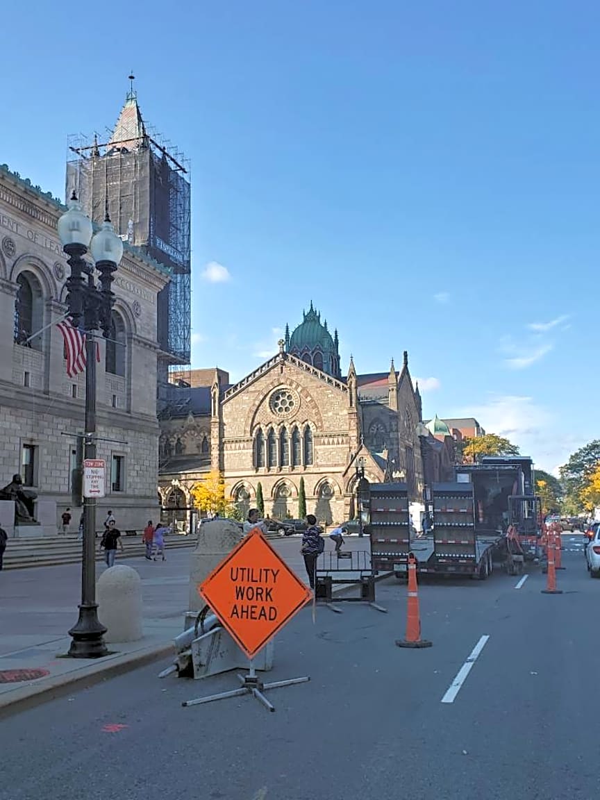 Intersection Of Dartmouth St And Saint James Ave And Huntington Ave, Boston, MaAnother random cone across from Fairmont Copley. Why are there cones all over the city that aren't being used?