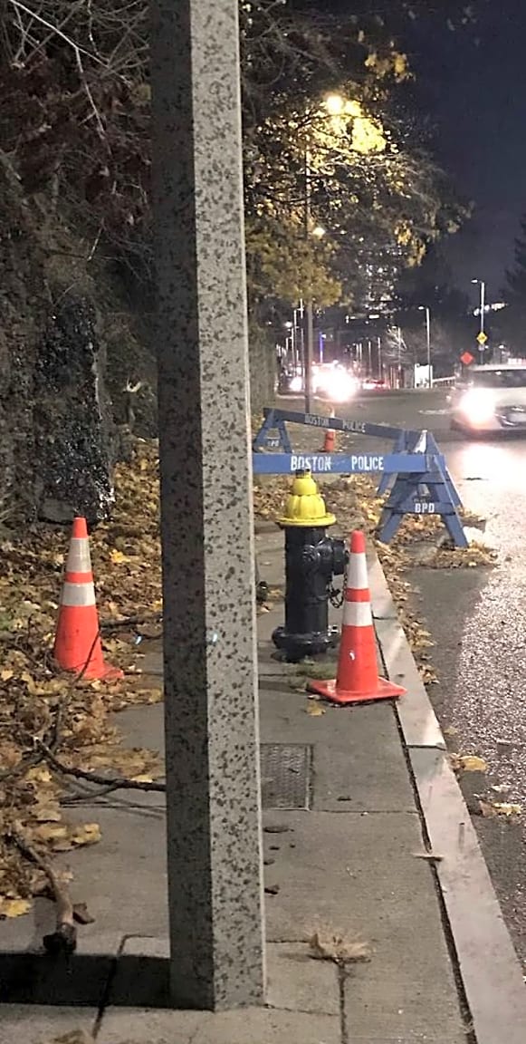 291 Huntington Ave, Boston, Ma, 021152 random cones left on the street. One is at 291 Huntington (left picture) and the other is around the corner at 55 Gainsborough Street.