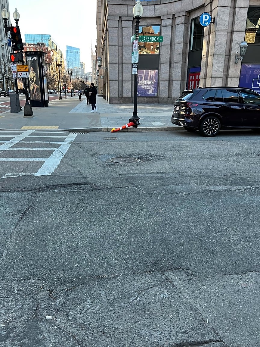 Intersection Of Dartmouth St And Saint James Ave And Huntington Ave, Boston, MaRandom cones all over the city. Unpaid public doesn’t have time to take hundreds of photos to address a routine issue. Do a sweep of back bay, south end and Fenway