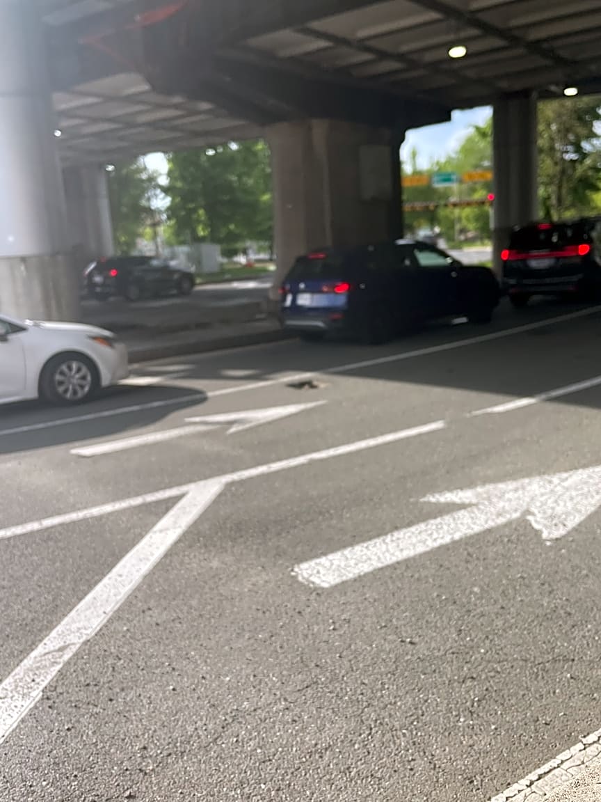 Intersection Of Freeport St And William T Morrissey Blvd, Dorchester, MaOn Morrissey Blvd Right after #777 is a overhead bridge where the red line train tracks are .There is a mess cloth hanging from the tracks and hitting the tops of cars. | Case (SR) Type: [MBTA] Referred To: [MBTA]