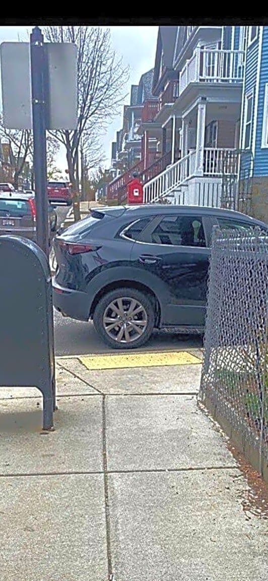 Intersection Of Althea St And Whitten St, Dorchester, Ma3rd day this car is still blocking wheelchair ramp and city has still not ticketed