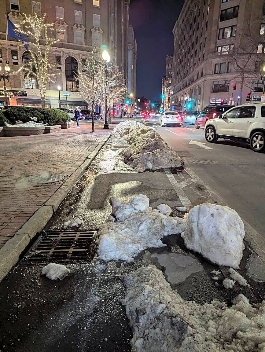 306 Stuart St, Boston, Ma, 02116Bike lane totally snowed in and needs to be plowed
