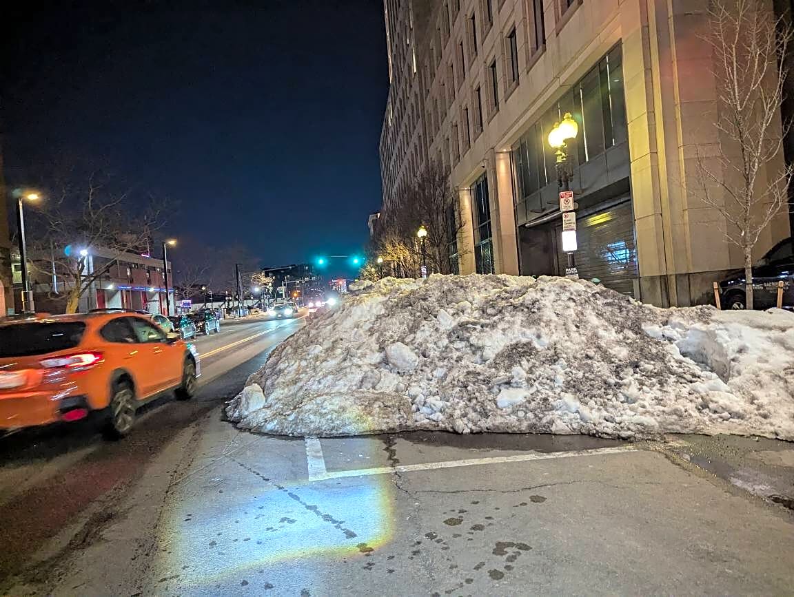 139 Columbus Ave, Boston, Ma, 02116Huge mountain of snow in the bike lane