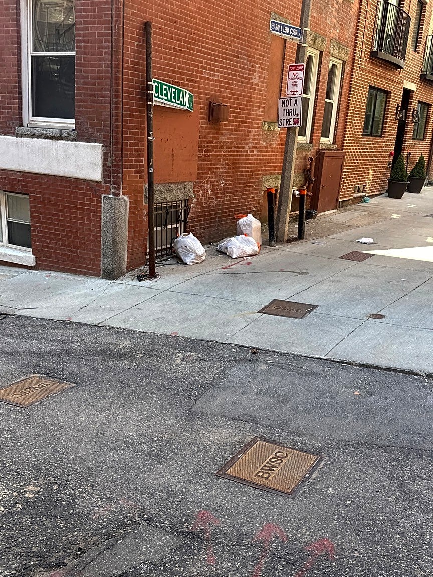 16 Margaret St, Boston, Ma, 02113Trash out illegally corner of Margaret st and Cleveland place