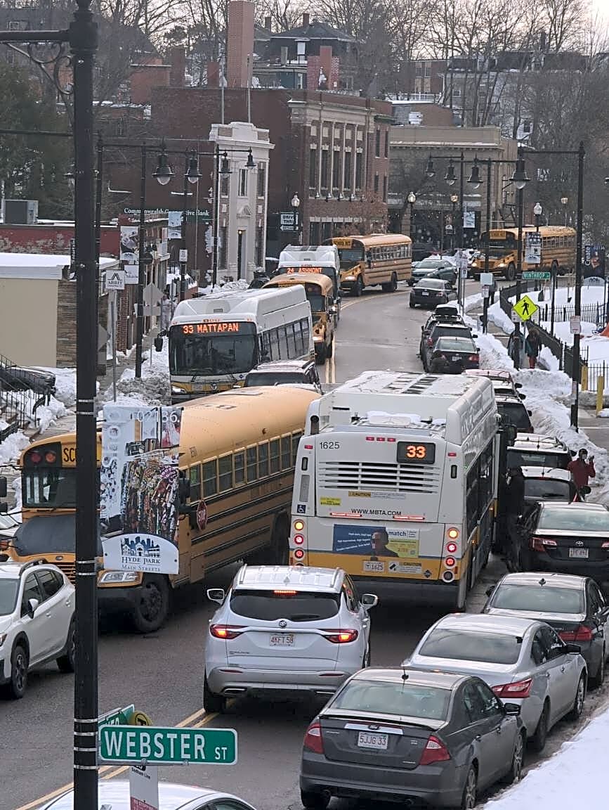 1138 River St, Hyde Park, Ma, 02136City bus and school bus blocking street river st and webster st
