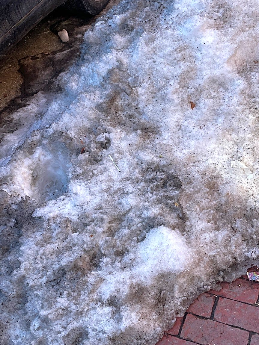 85 W Springfield St, Roxbury, Ma, 02118Needle in snow on sidewalk