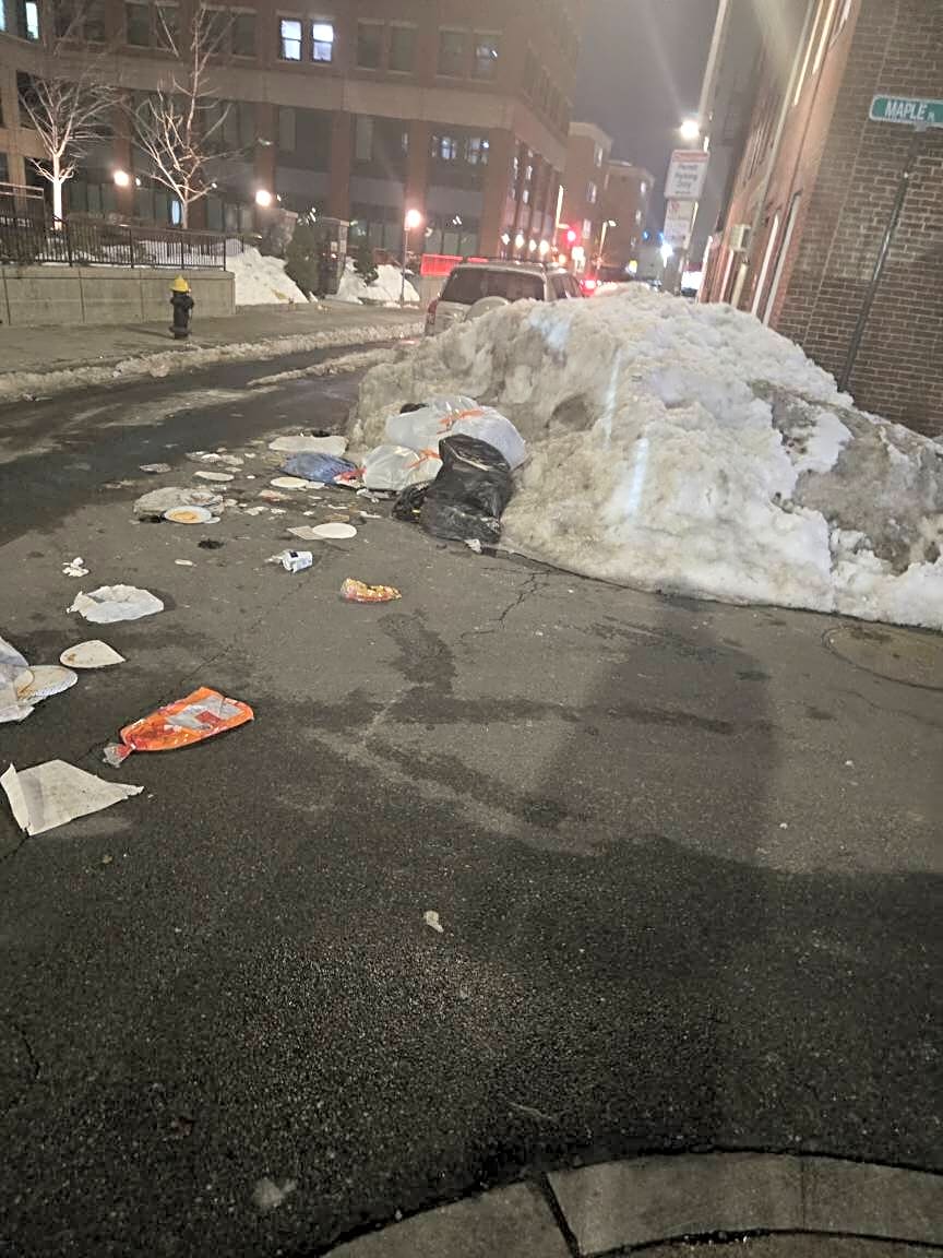 Intersection Of Oak St And Maple Pl, Boston, MaTrash everywhere