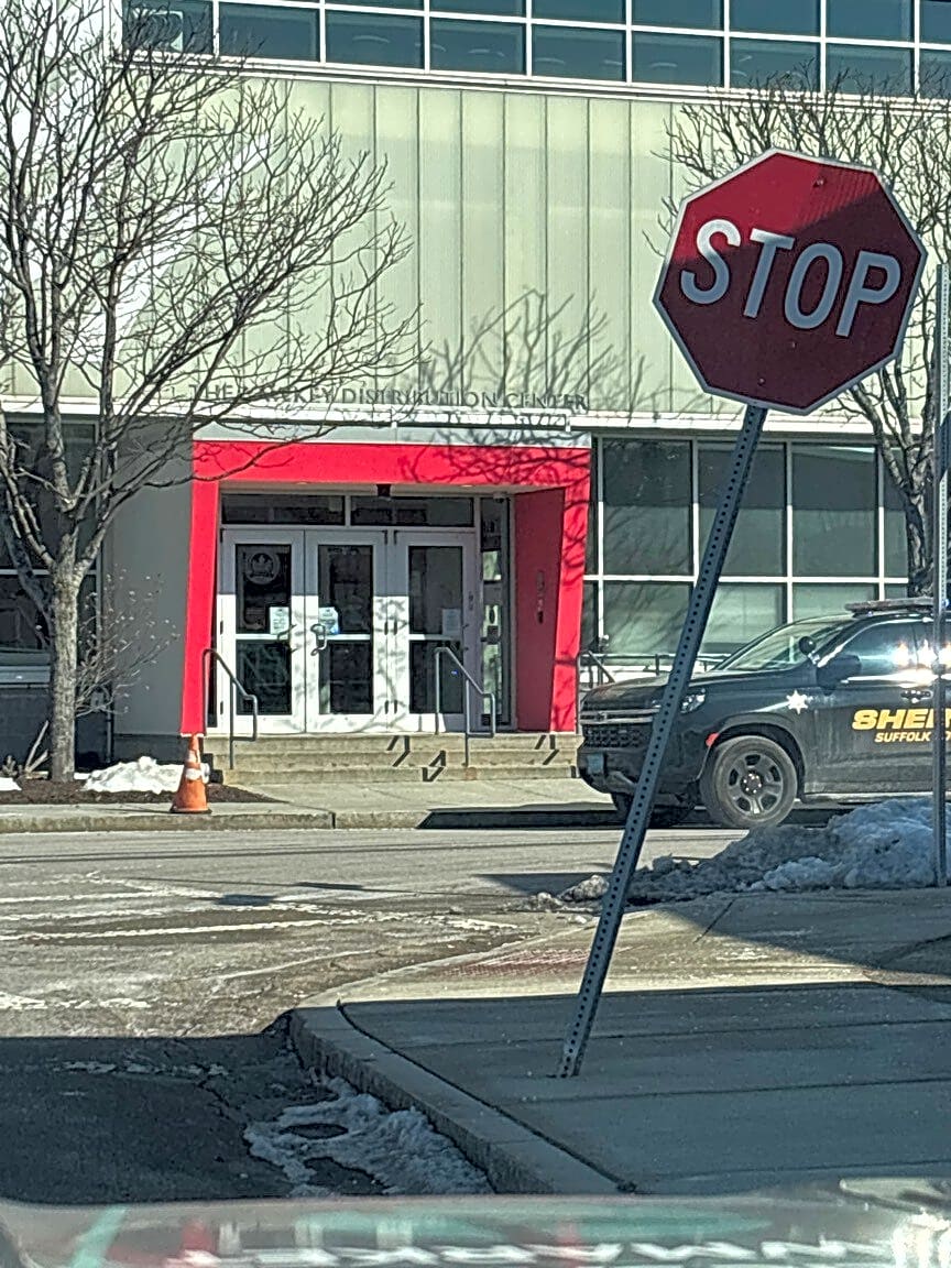 Intersection Of Topeka St And S Bay Ave, Roxbury, MaDamaged stop sign at the intersection of S. Bay Ave. and Topeka Street