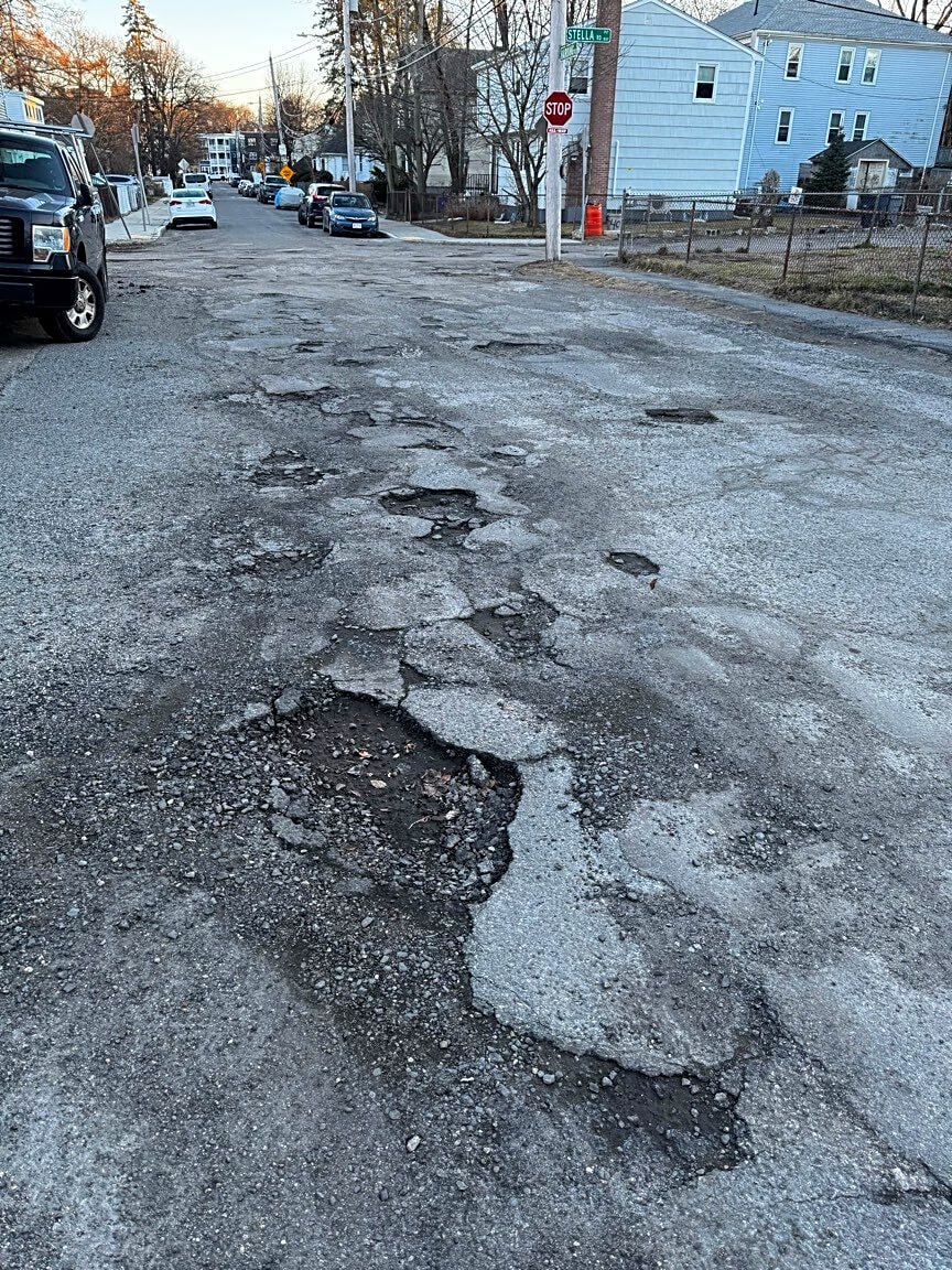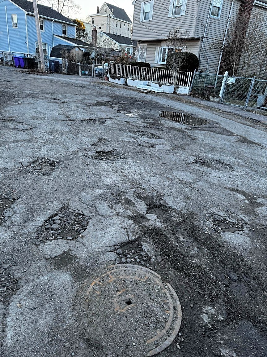54 Harding Rd, Roslindale, Ma, 02131Multiple potholes in need of repair.