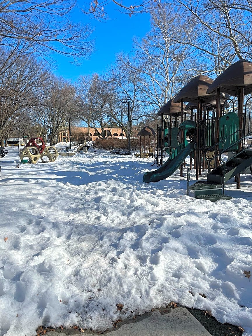 Intersection Of Decher Ave And Lamartine St, Jamaica Plain, MaStonybrook playground is covered in snow and has not been shoveled out
