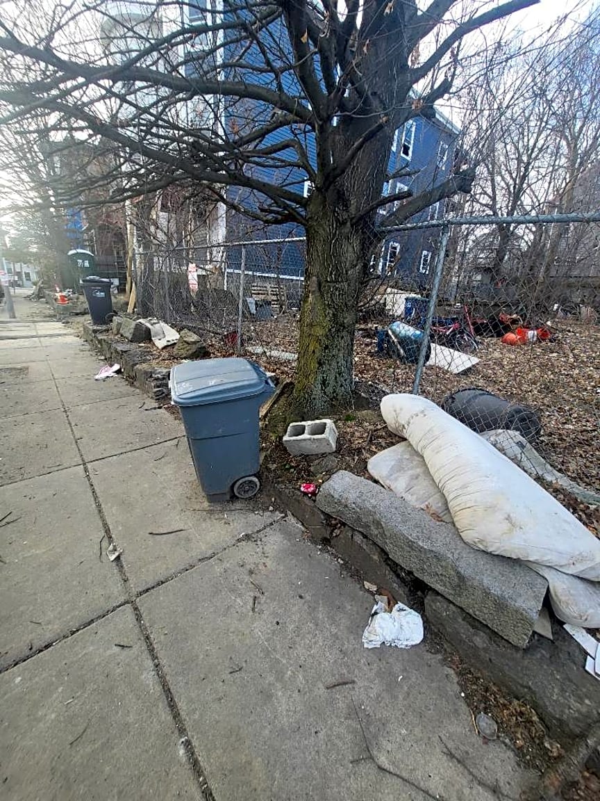 20 Woodville St, Roxbury, Ma, 02119Emptied barrels left out on sidewalk | Details: [constituent states this person has left a mattress infront of their home for weeks and it has been an on going issue] Exact location: [front]