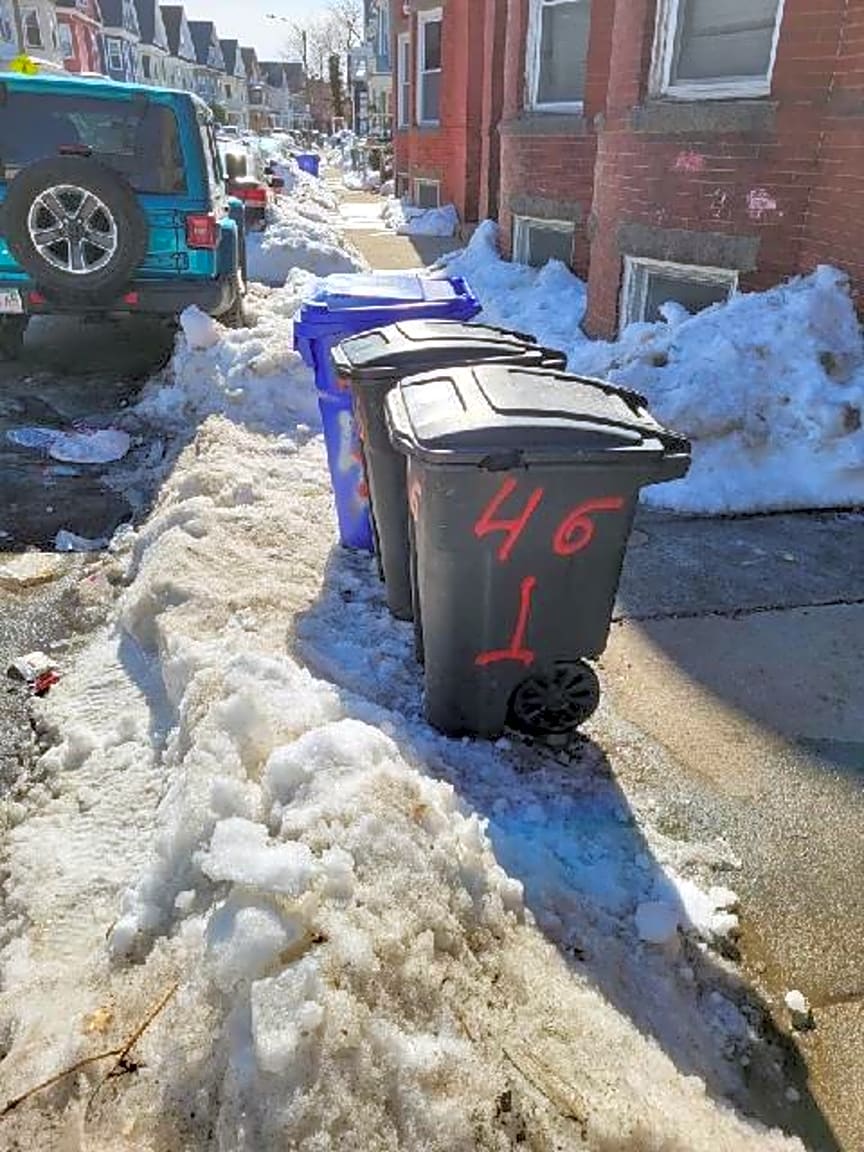 48 Saxton St, Dorchester, Ma, 02125Three days after trash day and their barrels are still blocking sidewalk, it's like this every week