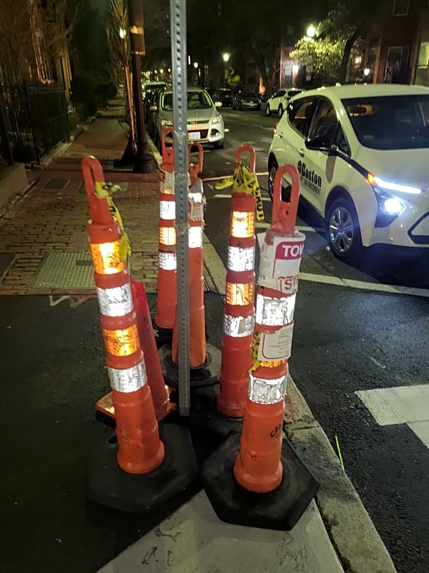 CLOSED #101006609972Noted. Work cones left behind after construction completed , was sent to dpw for removal!
