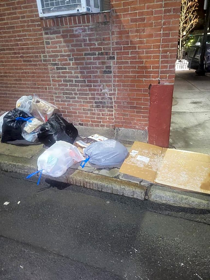 354 356 Hanover St, Boston, Ma, 02113354 Hanover dumps their trash every week on Tileston st and they don’t secure their recycling so it blows all over the place.