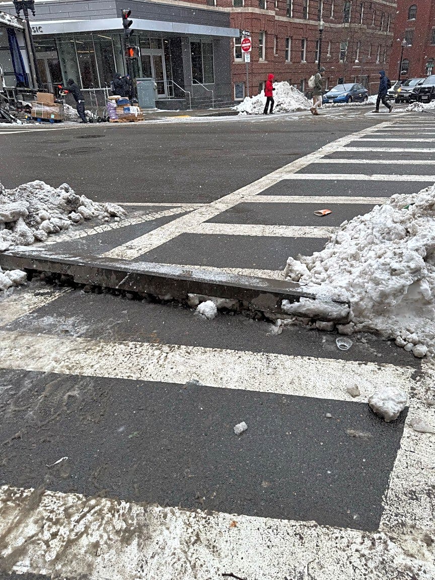 Intersection Of Bridge St And American Legion Hwy, Roslindale, MaSidewalk not shoveled