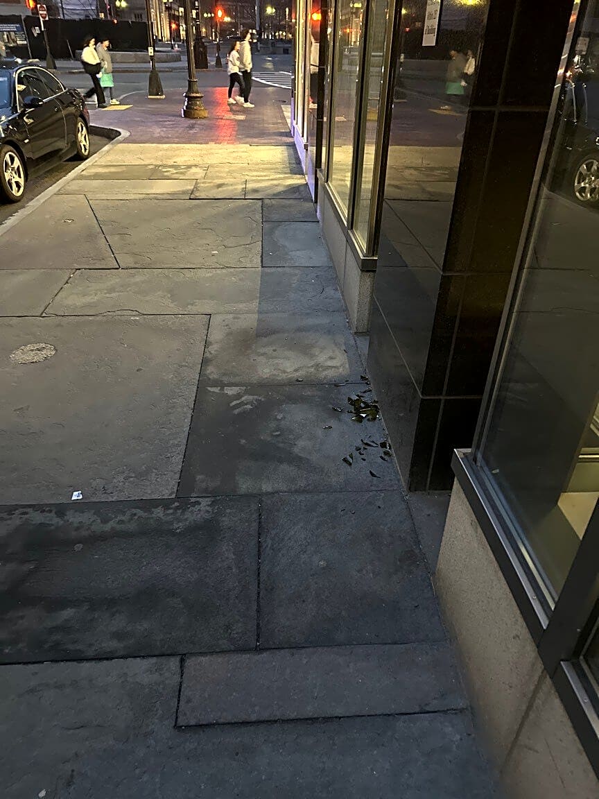 60 South St, Boston, Ma, 02111Broken glass on the side walk on south street