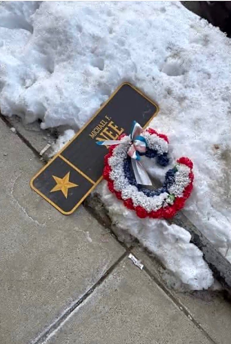 Intersection Of W Fourth St And E St, South Boston, MaOn west 4th and E street the Hero sign is on the ground in the snow. Photo attached.