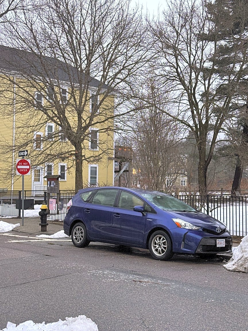 Intersection Of Plainfield St And Williams St, Jamaica Plain, MaBlue car parked illegally, too close to fire hydrant