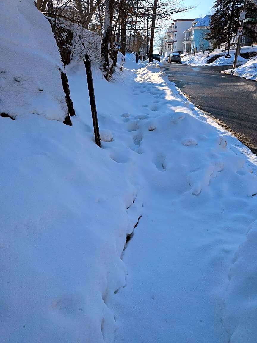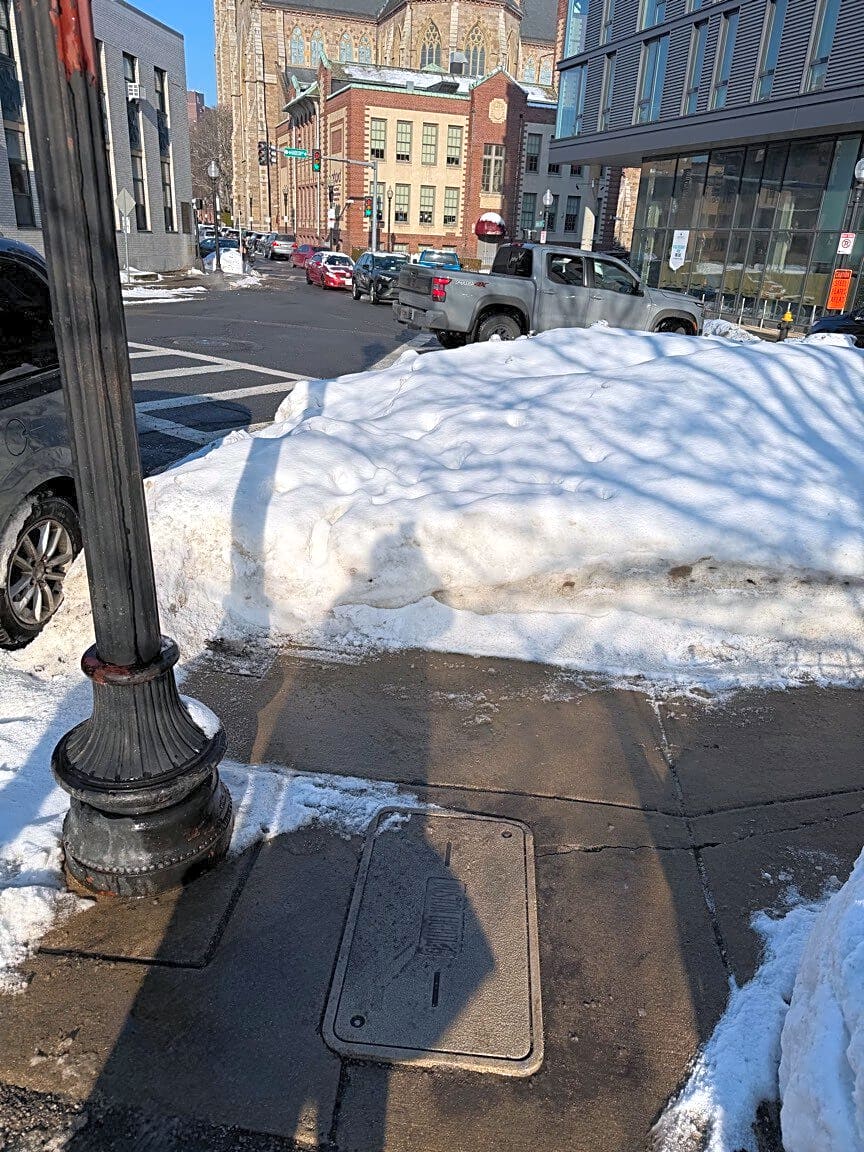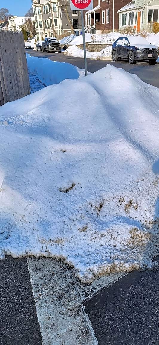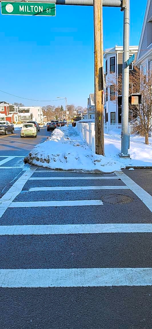 Intersection Of Minot St And Kenmare Rd, Dorchester, MaCurb cut blocked by snow.
